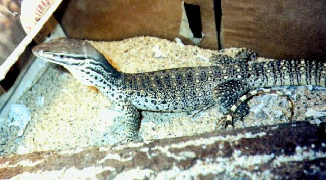In Seattle, I long though of acquiring more argus monitors. Finally, I decided to go ahead and get some. From a dealer named Rod Mitchel, I purchased three hatchlings produced by a breeder named Patrick Neighbors in Illinois. These were set up in a 60 gallon aquarium with newspaper substrate and a large water dish. I did not name them at first, since I wanted to see which ones were males and which were females, and when they are young that is impossible.