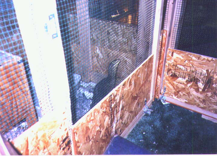 April 27, 1999. One of Hall's favorite past times seems to be looking out the window. He spends much of his time just gazing out into the wide world beyond that pane of glass. He did this in the old apartment, and since my recent move, he does this in his new cage as well, which is up against the room's outside window. Since the new cage has a wire mesh siding to a height of nearly 2 meters off the floor, Hall can climb up this and just hang out, seeing what is going on outside. He probably keeps my neighbors entertained.