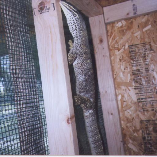 The scientific name of the argus monitor has been changed a couple times in the last two decades. This, understandably, leads to considerable confusion in what to call it. Up until the middle of this century, there was considered to be a species of monitor called Varanus gouldii, commonly known as the sand monitor, that ranged across all of Australia and parts of New Guinea. Then, someone figured out that the melanistic southern form was a different, but closely related, species, called Varanus rosenbergii, or the heath monitor. In 1980, Varanus gouldii was split again, this time separating off the strongly yellow spotted form from northern Australia and New Guinea from the lighter, more complexly patterned forms. The yellow spotted form was called Varanus panoptes, the argus monitor, while the other forms remained Varanus gouldii, the sand monitor. This was all fine up until around the middle of this decade, when someone found out that the museum specimen that was apparently the type specimen of Varanus gouldii was actually the species being called Varanus panoptes. By the rules of scientific nomenclature, this meant that the species formerly known as Varanus panoptes actually was Varanus gouldii, and the sand monitor was something else, soon named Varanus flavirufus. Things quickly got confusing, however, since the museum specimen was not actually the type, but rather the paratype (a distinction which even I don't fully understand). The whole affair went up before the committee that decides the scientific names of animals (the International Commission on Zoological Nomenclature, or ICZN for short). They formally decided that the argus monitor was Varanus panoptes, and so it will remain, now and forever. The desert dwelling sand monitors remain Varanus flavirufus, since they are a different species from what was originally formally described, and yet another species retains the name Varanus gouldii. This is all rather confusing, and it takes a while for everyone to catch up to the name change, however, so some people are still calling arguses Varanus gouldii. With time, the new names will gain acceptance until they are more nearly universally used.