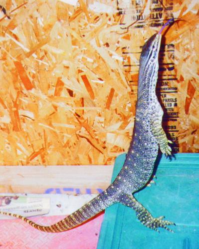 Argus monitors like to stand on their hind legs to bluff antagonists, fight rivals, catch a limb to climb on or a bit of meat above their head, or just to look around.