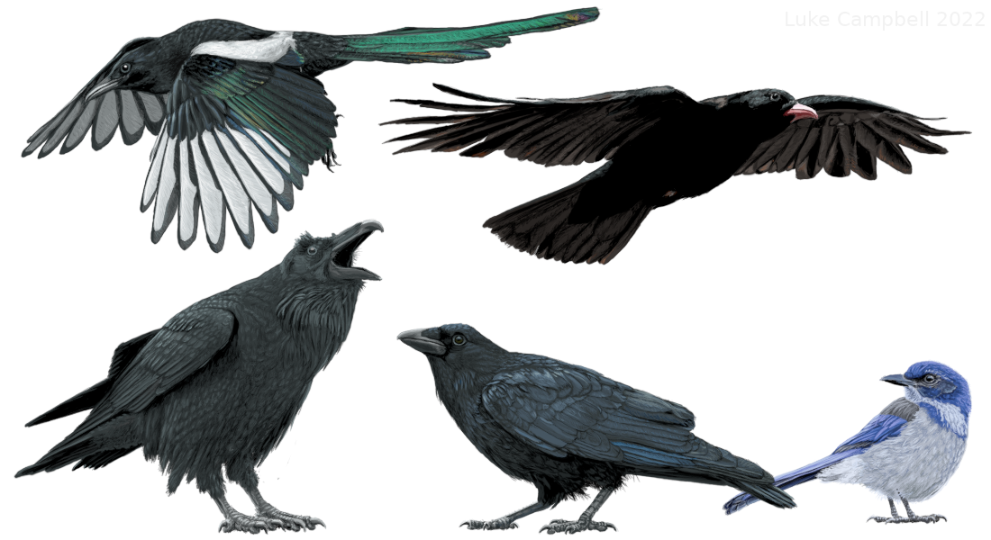 Corvids: The crow family is a group of passerine birds, containing crows, ravens, magpies, and jays.