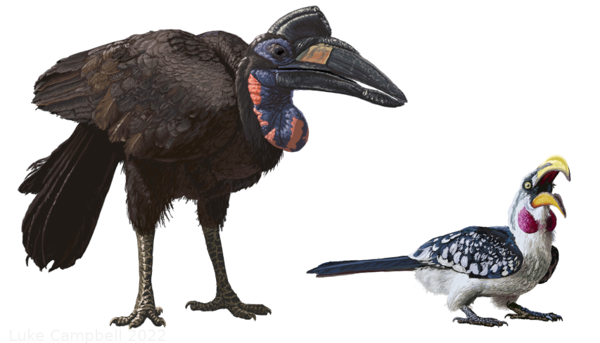 Shown are the Abyssinian ground hornbill and southern yellow-billed hornbill.