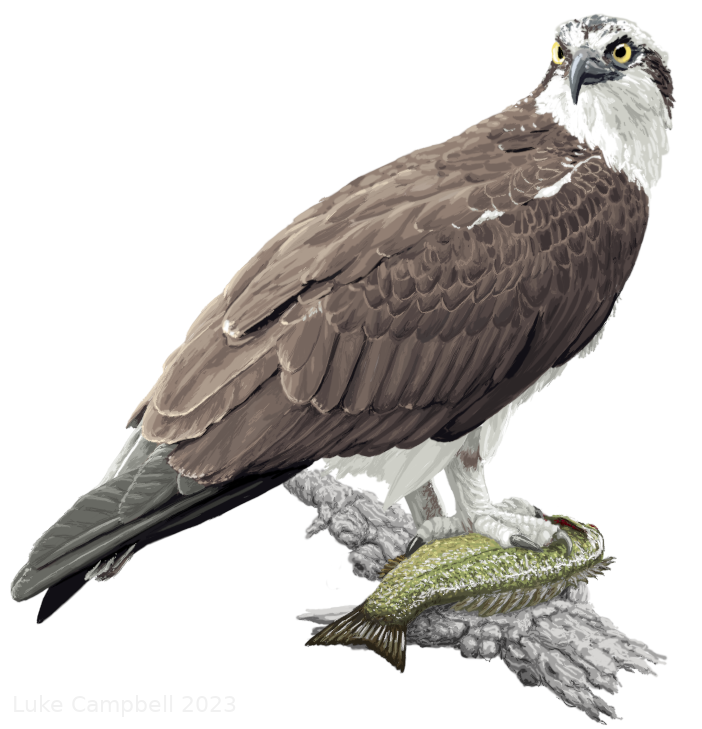 Ospreys: Ospreys are raptorial birds commonly found near water. They prey almost entirely on fish.