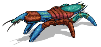 Shield-Footed Landolin: Landolins are herbivores, domesticated by Mants for meat. They form herds with a matriarchal hierarchy led by the oldest female. Males battle each other for the right to accompany the herd and mate with the females; they vigorously defend their herd from other males and dangerous intruders. The males have colorful enlarged front walking limbs that are used for display. When display fails, they also use them for bludgeoning each other or anything else they don't like.
