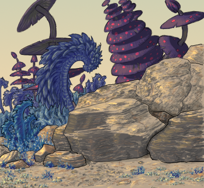 Some varieties of air plankton are passive drifters, but others use hair-like cilia or bristles to swim through the viscous air to help gain altitude. Even others can collect a net static charge, and be drawn into the air by the electric fields of Zhiroom's frequent thunderstorms.