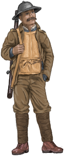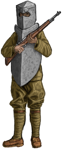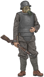 A variety of different armors were tried out in this age. Those that could stop rifle bullets generally proved to be too heavy for normal infantrymen, although some were used for soldiers at fixed emplacements such as machinegunners.