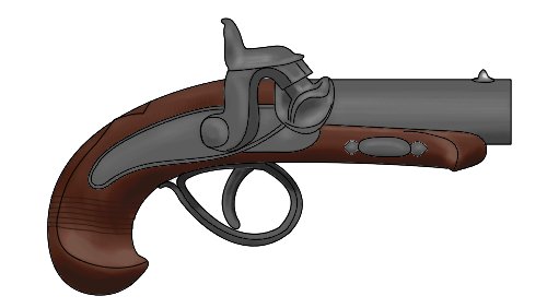 While all the older muzzle loader pistols of the previous age are available, one particularly famous model is listed below – appropriate for the pocket of any riverboat gambler or hidden in the bosom of any saloon lady.