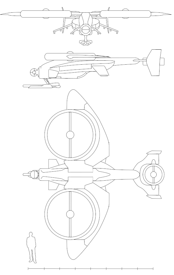 The Accipiter is a full sized fighter-bomber VTOL jet drone. It uses a blended wing body design without vertical fins to cut down on its radar profile.