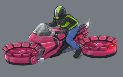 The Songbird is a typical skycyle – open-topped skycars with motorcycle-like saddle seats for passengers.