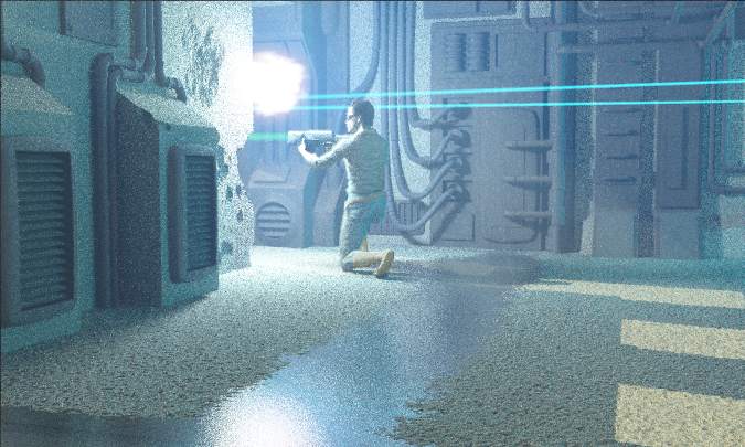 Those who cannot see the beam will not be able to easily tell where the laser is shooting from (although the plasma flash and sparks and blast from the laser incident on the target is obvious).