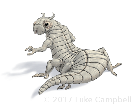 A Laer looks something like a wasp-headed centaur-salamander, with a body segmented like an annelid. Their skin is thick and smooth, slightly moist, and usually grey colored.