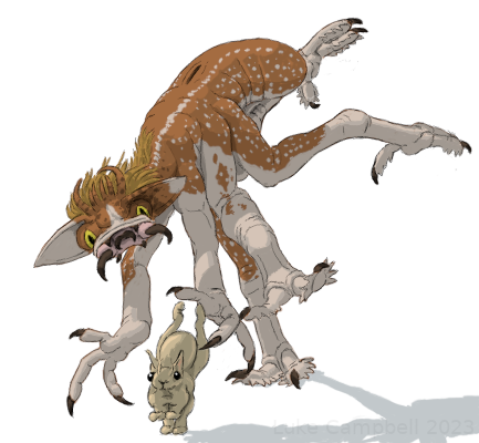 With their long, slender limbs, Pirangs are fast runners with good endurance. The splayed toes of a Pirang foot are useful for walking on soft or shifting surfaces.