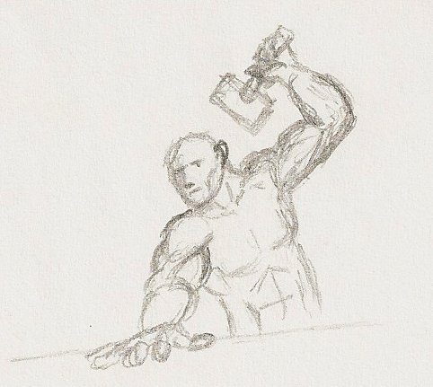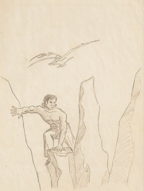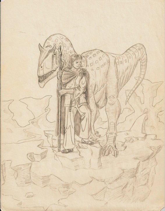 This drawing is from an old role playing game I was in. One of the characters was a green-skinned goblin who rode a dinosaur.